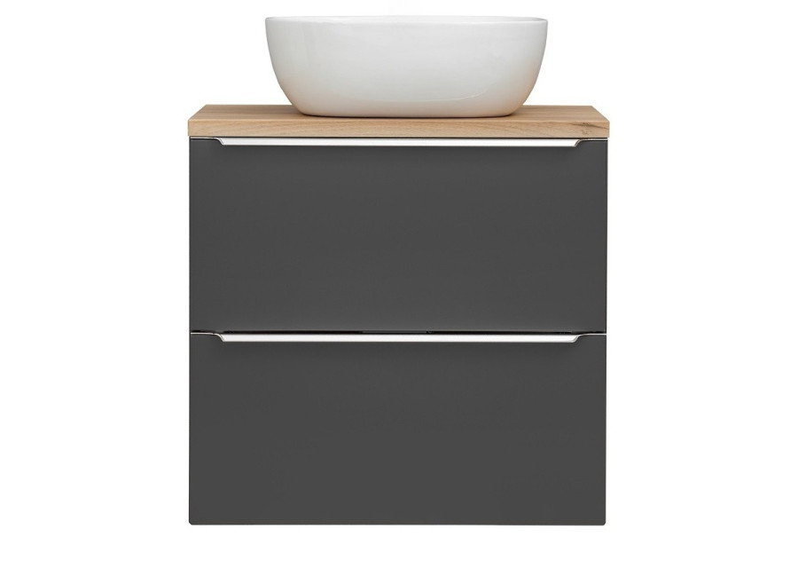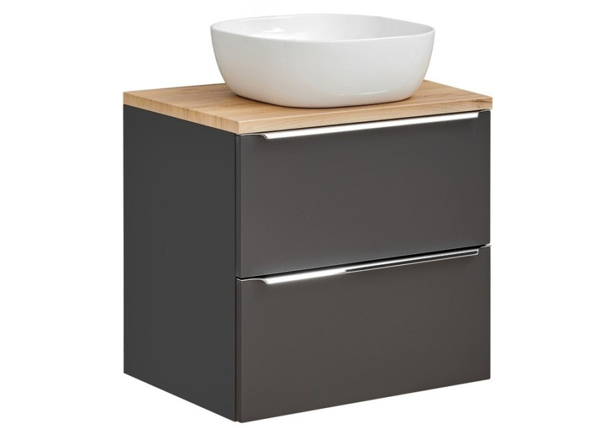 Závesná skrinka v šírke 60 cm ponúka dostatočný úložný priestor, no zároveň sa hodí aj do menších kúpeľní. Vyrobená je z laminovanej drevotriesky s ABS hranami, pričom čielka sú z MDF materiálu, čo zabezpečuje odolnosť voči vlhkosti. Kovové chrómové úchytky dodávajú celému dizajnu nádych luxusu a zároveň zaručujú komfortné používanie. Vyrába sa vo farebnej kombinácii čierna matná a dub craft zlatý. Kúpeľňová skrinka je určená na zavesenie na stenu, čo umožňuje jednoduchú údržbu podlahy pod ňou. Disponuje dvoma zásuvkami vybavené funkciou tichého zatvárania SOFT CLOSE.