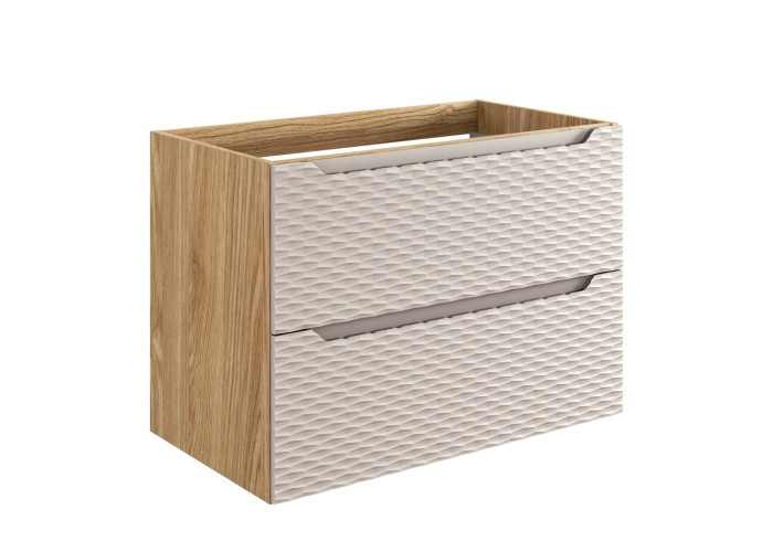 Skrinka pod umývadlo OCEAN Beige 82-80-2S je elegantný a praktický prvok kúpeľňového nábytku navrhnutý pre moderné interiéry. Kúpeľňová skrinka pod umývadlo v šírke 80 cm je vyrobená z laminovanej drevotriesky s ABS hranami, pričom dvierka sú z MDF materiálu. Skrinky do kúpeľne z kolekcie OCEAN zaujmú svojim prepracovaným dizajnom – trojrozmerné horizontálne línie na dvierkach pripomínajú pohyb oceánskej hladiny, čím dodávajú kúpeľňovým skrinkám originálny vzhľad.