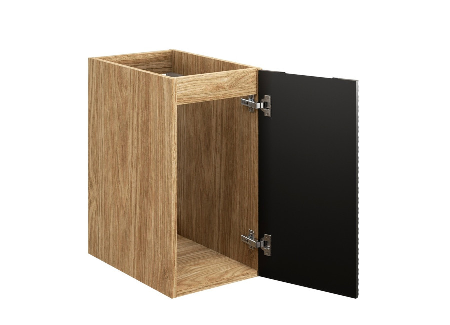 Úzka skrinka OCEAN Black 81-30-1D predstavuje elegantné a praktické riešenie pre každú modernú kúpeľňu. Kúpeľňová skrinka v šírke 30 cm maximálne využíva priestor aj v menších kúpeľniach. Je vyrobená z laminovanej drevotriesky s ABS hranami, ktoré zaručujú dlhú životnosť a odolnosť proti mechanickému poškodeniu. Dvierka sú vyhotovené z MDF materiálu. Farebné prevedenie kombinuje dub olejovaný s čiernou matnou, čím skrinka získava luxusný a moderný vzhľad.