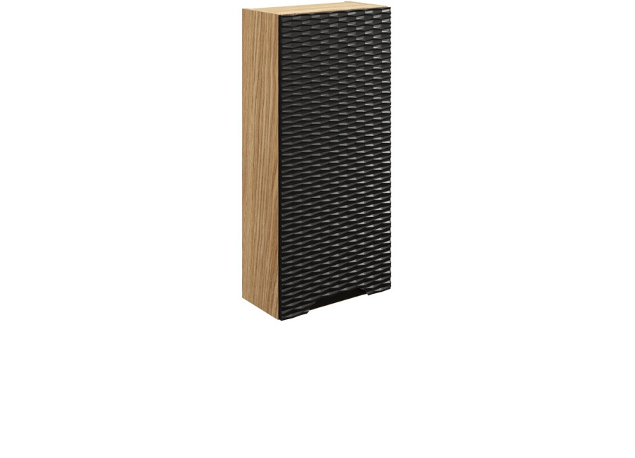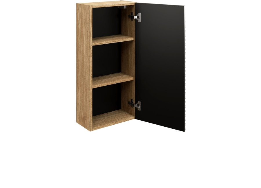 Závesná skrinka do kúpeľne OCEAN Black 83-35-1D predstavuje moderné a funkčné riešenie pre každú kúpeľňu. Tento kvalitný kúpeľňový nábytok je vyrobený z odolnej laminovanej drevotriesky s ABS hranami, pričom dvierka sú z MDF materiálu. Vďaka tomu sú skrinky do kúpeľne z kolekcie OCEAN odolné voči vlhkosti. Kúpeľňová skrinka kombinuje prírodnú farbu dub olejovaný s čiernou matnou. Dvierka sú vybavené systémom tichého dovierania, ktorý zvyšuje komfort pri každodennom používaní.