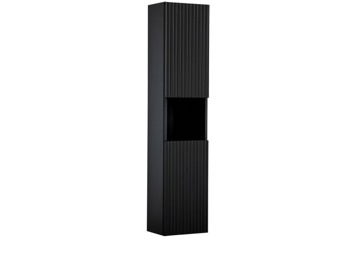 Vysoká policová skrinka do kúpeľne NOVA Black 80-03-2D predstavuje praktické a moderné riešenie pre všetkých, ktorí si potrpia na kvalitný a funkčný kúpeľňový nábytok. Kúpeľňová policová skrinka v šírke 30 cm je vyrobená z kvalitnej laminovanej drevotriesky, pričom jej hrany sú chránené odolnými ABS hranami, ktoré zvyšujú jej životnosť a odolnosť voči vlhkosti. Dvierka sú zhotovené z MDF materiálu a zdobené jemnými zvislými pásikmi, čo produktu dodáva moderný a elegantný vzhľad. Integrovaná úchytka podčiarkuje minimalistický dizajn a zároveň zaisťuje pohodlné otváranie. Praktickou vlastnosťou je tiché dovieranie dvierok, ktoré prispieva k komfortu pri každodennom používaní.