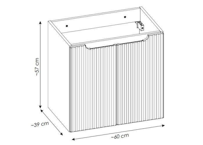 Skrinka je určená na zavesenie na stenu, čím šetrí miesto a umožňuje ľahšiu údržbu podlahy. Dvierka sú vybavené funkciou tichého dovierania, čo zvyšuje komfort pri každodennom používaní. Ku skrinke pod umývadlo odporúčame zakúpiť plochý sifón, ktorý vám umožní maximálne využiť hornú policu. Umývadlo nie je zahrnuté v cene skrinky.