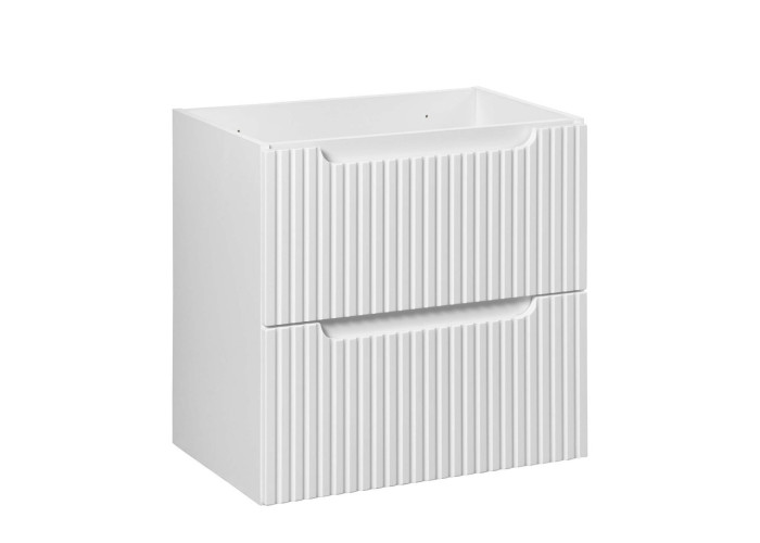 Predné plochy skrinky sú zdobené jemnými zvislými pásikmi. Integrované úchytky dopĺňajú dizajn a zabezpečujú pohodlné používanie. Skrinka je navrhnutá na zavesenie na stenu, vďaka čomu umožňuje jednoduché čistenie podlahového priestoru. Zásuvková skrinka pod umývadlo ponúka dve zásuvky vybavené funkciou tichého dovierania. Na maximálne využitie úložného priestoru vrchnej zásuvky odporúčame zakúpenie plochého sifónu.