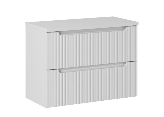 Predstavujeme Vám skrinku pod umývadlo s doskou NOVA WHITE 82-80-2S-DB, ktorá je súčasťou modernej kolekcie kúpeľňového nábytku navrhnutého s dôrazom na funkčnosť a moderný dizajn. Ide o praktickú zásuvkovú skrinku pod umývadlo v šírke 80 cm, ktorá poskytuje štedrý úložný priestor. Korpus skrinky je vyrobený z laminovanej drevotriesky s ABS hranami, čielka zásuviek sú z frézovaného MDF materiálu. Charakteristickým prvkom dizajnu sú predné plochy, ktoré sú elegantne zdobené jemnými zvislými pásikmi. Minimalistický vzhľad dotvárajú integrované úchytky.