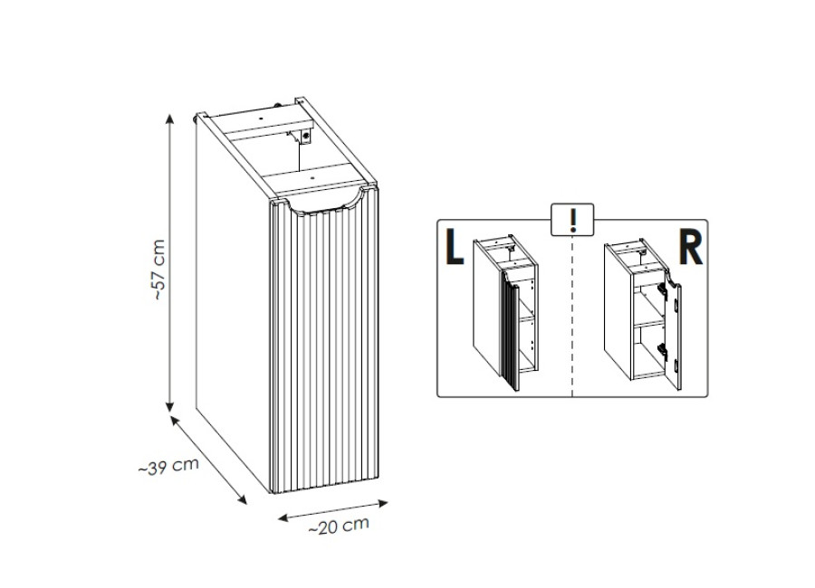 Kúpeľňová skrinka v šírke 20 cm je vyrobená z kvalitnej laminovanej drevotriesky s ABS hranami, pričom dvierka sú zhotovené z MDF materiálu. Predné plochy sú efektne zdobené zvislými pásikmi, ktoré dodávajú skrinke osobitý charakter. Skrinka je určená na zavesenie na stenu, čo uľahčuje údržbu podlahy. Oceníte aj systém tichého dovierania dvierok, ktorý zvyšuje komfort používania. Skrinka má integrovanú úchytku.
