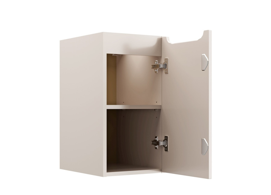 Závesná skrinka NOVA CASHMERE 81-30-1D v šírke 30 cm je súčasťou našej kolekcie béžového nábytku do kúpeľne, ktorá doplní každý interiér o nádych luxusu a elegancie. Kolekcia obsahuje kompletnú výbavu - skrinky pod umývadlo, vysoké skrinky aj závesné skrinky do kúpeľne, takže si môžete zariadiť celý priestor v jednotnom štýle. Úzka skrinka do kúpeľne je navrhnutá primárne ako spojovacia alebo rozširujúca skrinka k umývadlovým skrinkám z rovnakej kolekcie. Umožňuje efektívne vyplniť priestor a rozšíriť úložné možnosti vedľa umývadla, prípadne poslúži ako samostatný úložný prvok v menších priestoroch.