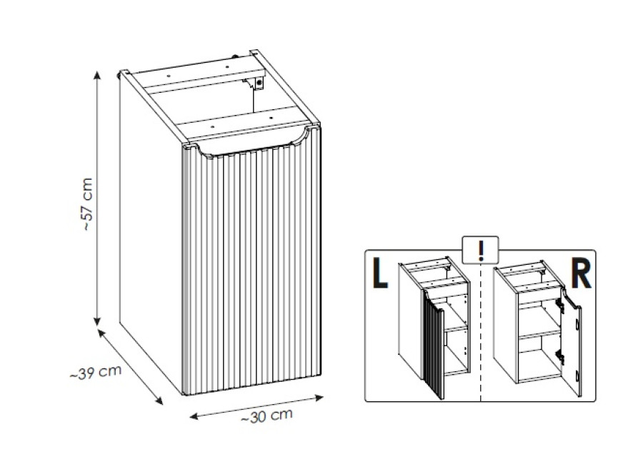 Je vyrobená z kvalitnej laminovanej drevotriesky s ABS hranami, pričom dvierka sú zhotovené z MDF materiálu. Predné plochy sú efektne zdobené zvislými pásikmi, ktoré dodávajú skrinke osobitý charakter. Skrinka je určená na zavesenie na stenu, čo uľahčuje údržbu podlahy. Oceníte aj systém tichého dovierania dvierok, ktorý zvyšuje komfort používania. Skrinka má integrovanú úchytku. NOVA CASHMERE 81-30-1D sa dodáva v elegantnom farebnom prevedení kašmír, ktoré patrí medzi vyhľadávané odtiene medzi béžovými skrinkami do kúpeľne. Tento jemný béžový odtieň sa ľahko kombinuje s rôznymi farebnými akcentmi a doplnkami.