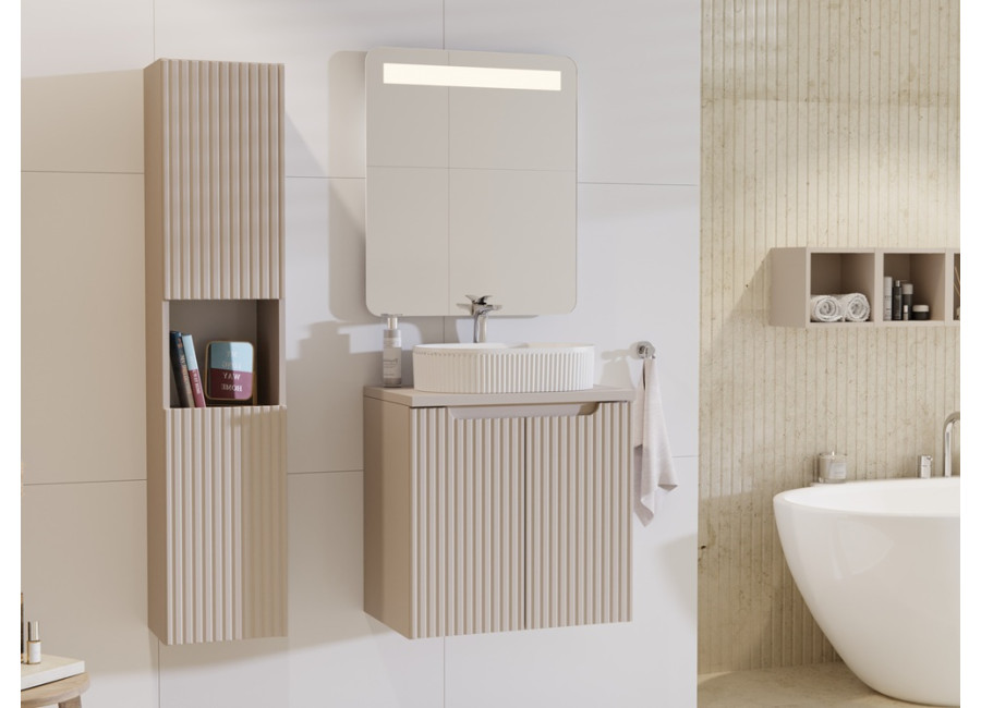 Predstavujeme Vám kúpeľňovú skrinku NOVA CASHMERE 83-27-Q, ktorá slúži ako samostatná polica na stenu alebo ako farebný doplnok do vysokej kúpeľňovej skrinky 80-03-2DSkrinka je vyrobená z kvalitnej laminovanej drevotriesky (hrúbka 16 mm), ktorá je osvedčeným materiálom pre kúpeľňové prostredie. Hrany sú ošetrené odolnou ABS hranou, ktorá zvyšuje ochranu proti mechanickému poškodeniu a prenikaniu vlhkosti.