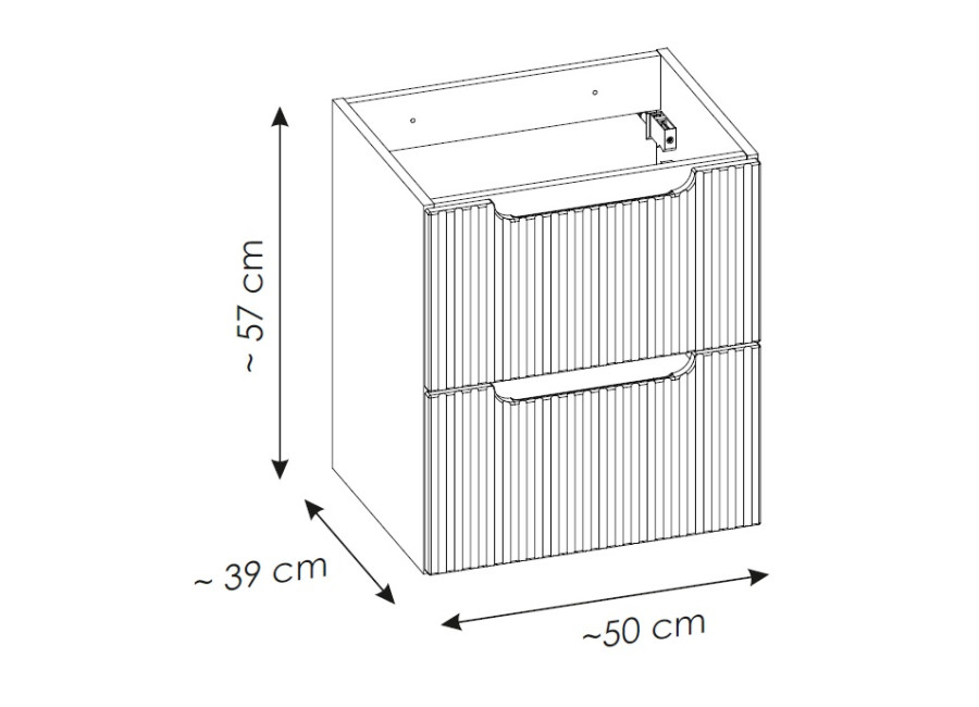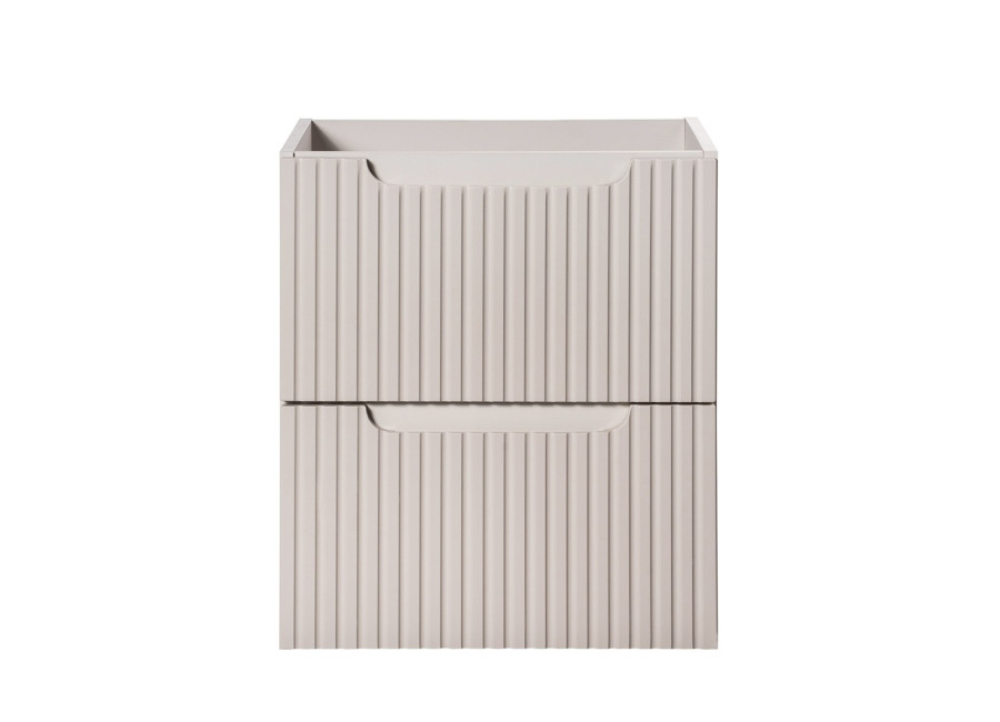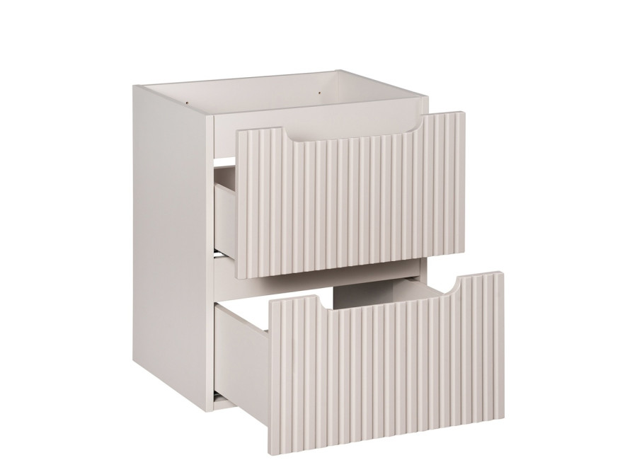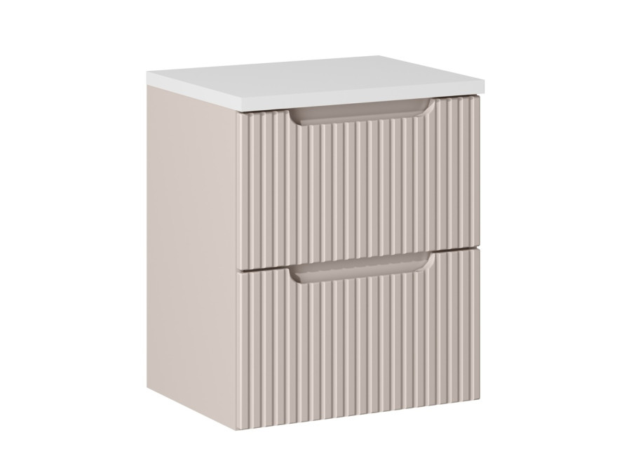 Skrinka pod umývadlo s doskou NOVA CASHMERE 82-50-2S-DB predstavuje praktické a elegantné riešenie pre vašu kúpeľňu. Patrí medzi obľúbené béžové skrinky do kúpeľne, ktoré prinášajú do priestoru svetlosť a pokojnú atmosféru. Zásuvková kúpeľňová skrinka ponúka dostatok úložného priestoru v dvoch priestranných zásuvkách. Ide o skrinku pod umývadlo v šírke 50 cm, ktorá je vhodná aj do menších kúpeľní. Korpus skrinky je vyrobený z laminovanej drevotriesky s ABS hranami. Čielka zásuviek sú zhotovené z MDF materiálu a zdôrazňujú moderný dizajn – ich predné plochy sú zdobené zvislým frézovaním (pásikmi).