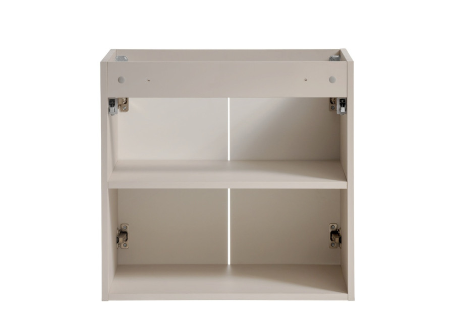 Skrinka pod umývadlo 60 cm ponúka praktické riešenie pre menší priestor v kúpeľni a vďaka vyhotoveniu vo farebnom prevedení kašmír (béžová) perfektne zapadne do interiéru ako neoddeliteľná súčasť kúpeľňového priestoru. Vrchná doska je vo farbe dub evoke. Kúpeľňová zásuvková skrinka má dvierka vybavené tichým dovieraním. Súčasťou balenia sú tri sady úchytiek – lesklé zlaté, lesklé chrómové a čierne matné, čo vám umožňuje prispôsobiť vzhľad skrinky už pri montáži. Skrinka je navrhnutá na zavesenie na stenu, čím umožňuje ľahšie čistenie podlahy.