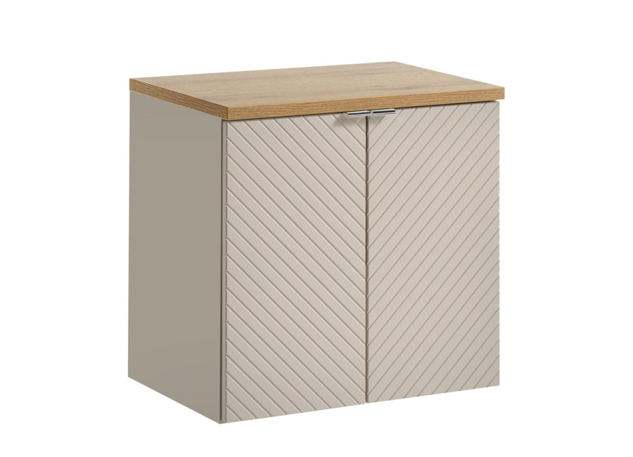 Skrinka pod umývadlo s doskou VIVA CASHMERE 82-60-2D-DD je elegantným a praktickým riešením pre vašu kúpeľňu. Skrinka je vyrobená z kvalitnej laminovanej drevotriesky, doplnenej ABS hranami, k čomu sa pridávajú predné plochy z odolného MDF materiálu, ktoré sú zdobené modernými drážkami. Tie dodávajú skrinke moderný vzhľad.