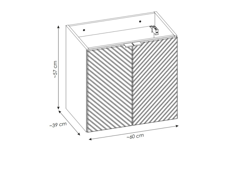 Skrinka je dostupná vo farebnom prevedení kašmír (béžová). Je určená na zavesenie na stenu. Dvierka a zásuvky sú vybavené funkciou tichého dovierania. Pre maximálne využitie hornej zásuvky a police odporúčame zakúpiť plochý sifón, ktorý  Vám umožní naplno využiť úložný priestor skrinky.