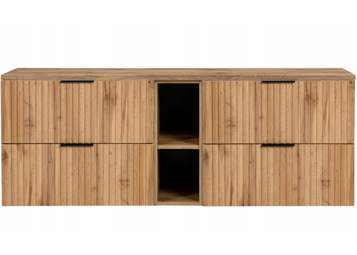 Predstavujeme Vám skrinku pod umývadlo ADEL vo farbe dub wotan, ktorá predstavuje komplexné a praktické riešenie úložného priestoru pre Vašu kúpeľňu. Tento kus kúpeľňového nábytku je navrhnutý s dôrazom na funkčnosť a moderný dizajn, ktorý sa ľahko začlení do rôznych interiérových štýlov a konceptov. Skrinka v šírke 180 cm je zložená zo štyroch častí: