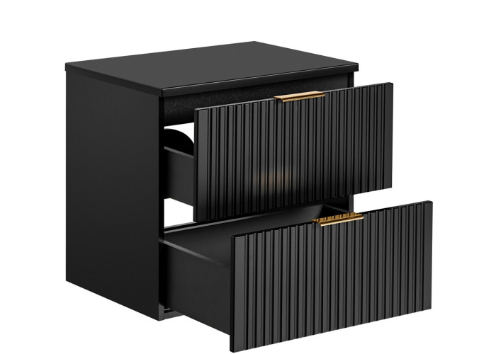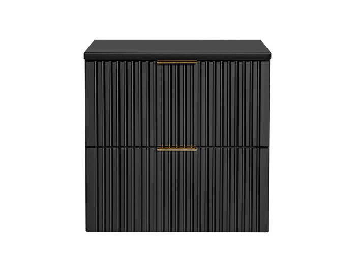 Skrinka pod umývadlo je vyrobená z laminovanej drevotriesky s ABS hranami, čo jej zabezpečuje zvýšenú odolnosť voči vlhkosti. Čelá zásuviek sú z MDF materiálu, ich povrch zdobí zvislé ozdobné drážkovanie, ktoré dodáva celému nábytku decentný vizuálny detail. Farebné prevedenie čierna matná pôsobí elegantne a ľahko sa kombinuje s ostatnými doplnkami v kúpeľni. Skrinka je vybavená dvoma zásuvkami s funkciou tichého zatvárania. Výhodou sú tri farebné sady plastových úchytiek – v balení nájdete čiernu matnú, lesklú zlatú aj lesklú chrómovú variantu. Úchytky si tak jednoducho zladíte s batériou alebo inými doplnkami vo vašej kúpeľni.