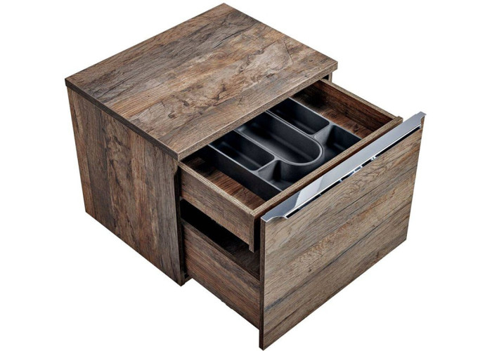 Pre maximalizáciu úložného priestoru obsahujú horné zásuvky praktický organizér, ktorý nielen účinne zakrýva výrez na sifón, ale taktiež poskytuje ďalší odkladací priestor pre drobné predmety. Tento organizér oceníte najmä v prípade, ak plánujete skrinku využiť bez umývadla.