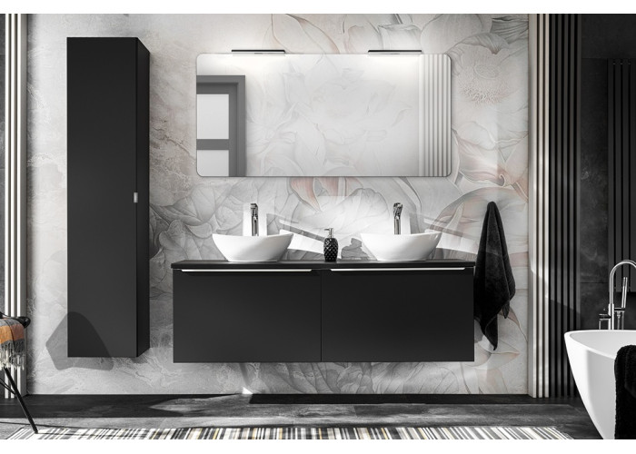 Skrinka je vyrobená z kvalitnej laminovanej drevotriesky s ABS hranami, čím je zabezpečená jej odolnosť voči vlhkosti. Hladké predné plochy v kombinácii s chrómovou úchytkou a farebným prevedením v čiernej matnej dodávajú produktu elegantný a minimalistický vzhľad, ktorý ľahko zapadne do akejkoľvek modernej kúpeľne. Pre komfortné používanie je skrinka vybavená funkciou tichého dovierania dvierok. Skrinka je navrhnutá ako závesná, čo umožňuje jednoduchšiu údržbu podlahy a vytvára vzdušnejší vzhľad celej kúpeľne.