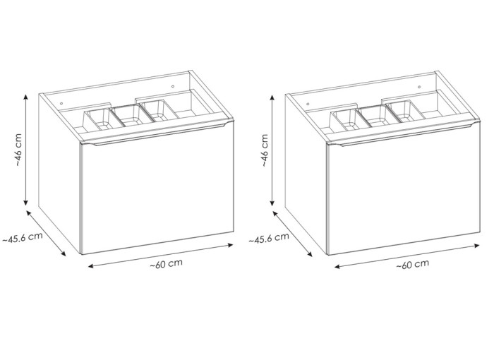 Skrinka je navrhnutá pre montáž na stenu, čo zabezpečuje jednoduchú údržbu podlahy a vytvára vizuálne ľahší a modernejší vzhľad kúpeľne. Sifón ani umývadlo nie sú zahrnuté v cene skrinky, je ich potrebné zakúpiť samostatne.