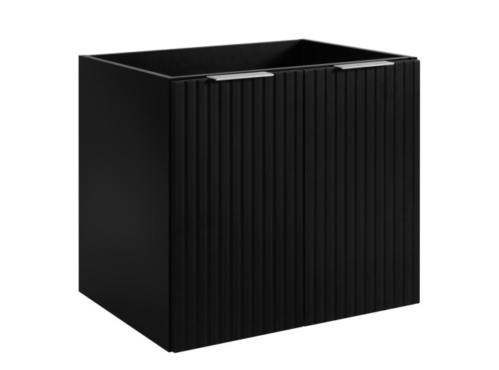 Skrinka pod umývadlo FLOW čierny matný B60D2 predstavuje moderný kúpeľňový nábytok, ktorý je praktickým riešením pre každú kúpeľňu. Táto skrinka pod umývadlo v šírke 60 cm je vyrobená z laminovanej drevotriesky s ABS hranami a predné plochy sú z MDF materiálu, čo zaručuje vysokú odolnosť voči vlhkosti. Predné plochy skrinky sú zdobené zvislým drážkovaním a farebné prevedenie v čiernej matnej dodáva priestoru elegantný vzhľad. Závesná konštrukcia skrinky umožňuje lepšie využitie priestoru pod umývadlom.