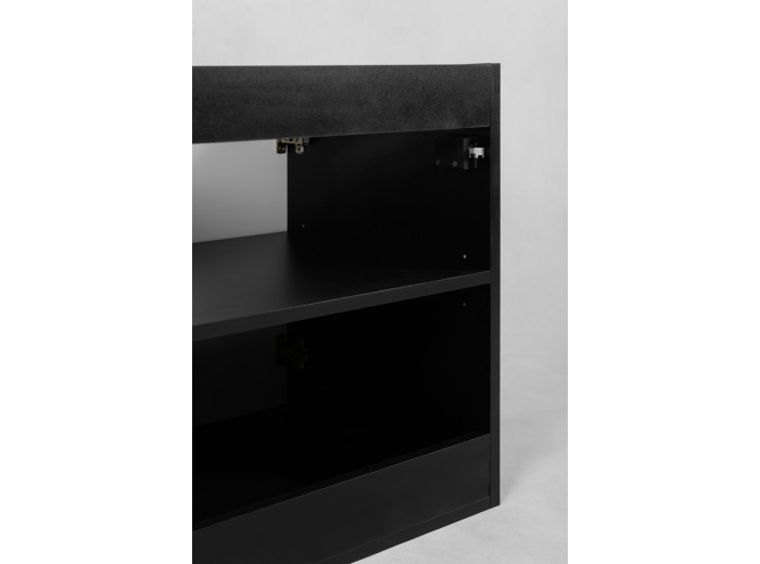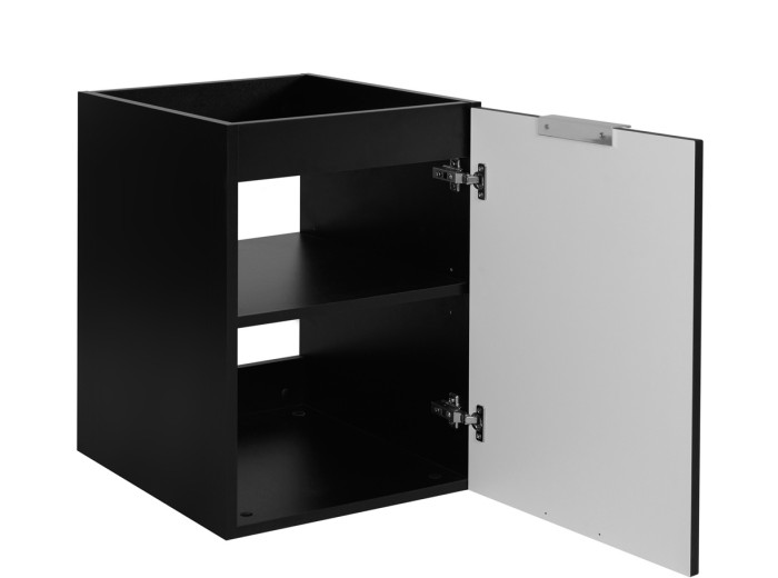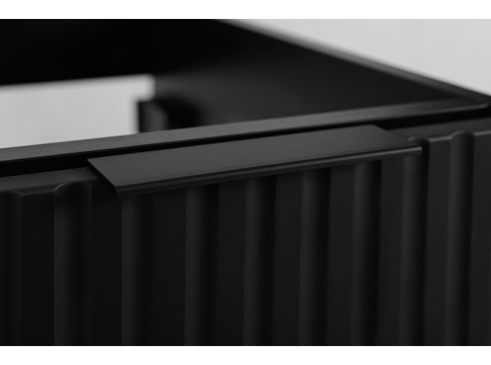 Skrinka pod umývadlo FLOW v čiernom matnom prevedení a šírke 100 cm predstavuje kúpeľňový nábytok, ktorý je zostavený z troch častí: