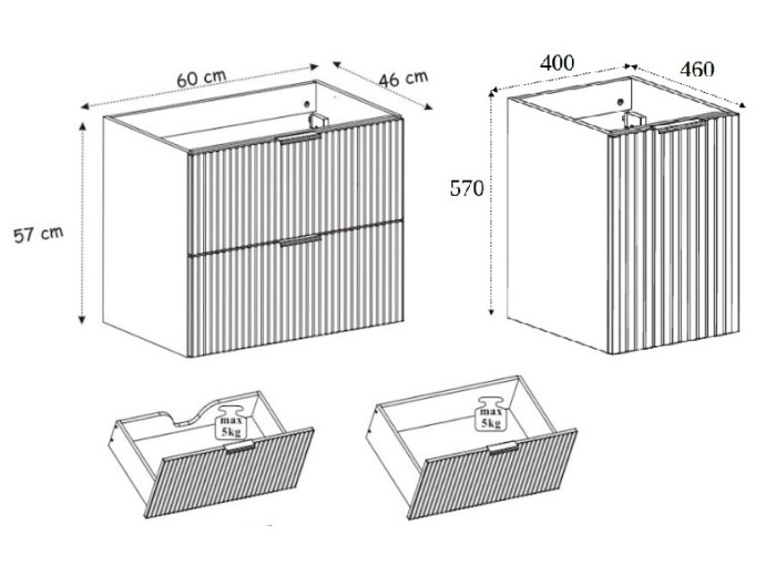 - 60 cm zásuvkovej skrinky pod umývadlo,