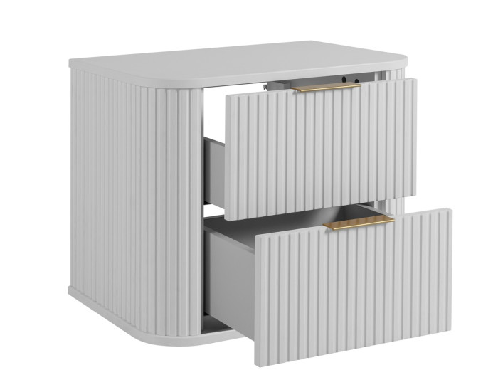 Elegantná biela závesná skrinka pod umývadlo ELEGANCE W60 s vrchnou doskou je ideálnou voľbou pre milovníkov moderných bielych kúpeľní. Táto skrinka splní všetky Vaše očakávania týkajúce sa štýlového a funkčného bieleho nábytku do kúpeľne. Je navrhnutá tak, aby dokonale zapadla do konceptu bielych kúpeľní, pričom jej oválny tvar pridáva na jedinečnosti. Vyrobená je z kvalitnej laminovanej drevotriesky a MDF materiálu s hrúbkou 16 mm. Zvislé drážky na korpuse a čielkach zásuvky pridávajú skrinke jemný a elegantný vzhľad. Zásuvky sú vybavené technológiou Soft Close pre tiché dovieranie, čo zaručuje maximálny komfort pri každodennom používaní.
