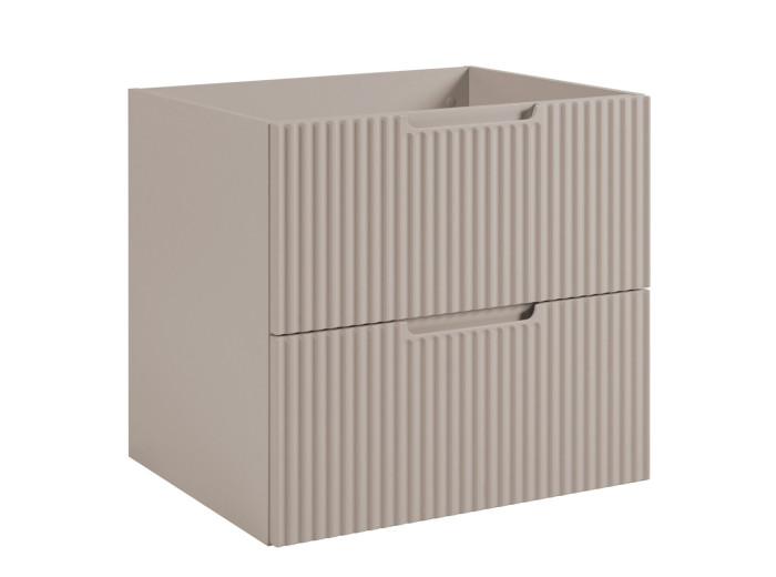 Skrinka pod umývadlo v šírke 60 cm je súčasťou kolekcie VENA, ktorá obsahuje kúpeľňové skrinky, vysoké skrinky aj závesné skrinky do kúpeľne. Nábytok do kúpeľne je vyrobený z laminovanej drevotriesky s ABS hranami, pričom predné plochy z MDF materiálu sú zdobené zvislým drážkovaním. Vďaka farebnému prevedeniu kašmír, vnútorným častiam zásuviek v svetlosivej farbe a zafrézovaným úchytkám prináša do priestoru jemný nádych nadčasového dizajnu. Skrinka je závesná na stenu a zásuvky sú vybavené funkciou tichého dovierania, čo prispieva k vyššiemu komfortu pri každodennom používaní.