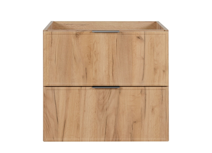 Skrinka pod umývadlo SLIM vo farbe dub craft zlatý so šírkou 60 cm je dokonalým riešením pre každú modernú kúpeľňu. Kúpeľňová skrinka je vyrobená z kvalitnej laminovanej drevotriesky s ABS hranami, ktoré zabezpečujú zvýšenú odolnosť voči vlhkosti. Predné plochy zdobí MDF materiál s jemným úzkym rámčekom, ktorý dodáva nábytku elegantný vzhľad. Farebné prevedenie dub craft zlatý vytvára teplý a príjemný pocit, zatiaľ čo vnútorné časti zásuviek sú v decentnej svetlosivej farbe. Skrinka je závesná na stenu, čo znamená úsporu miesta a jednoduché čistenie podlahových plôch.