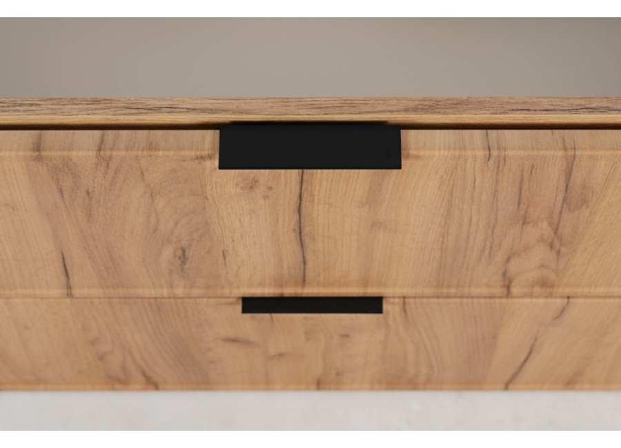 Skrinka pod umývadlo SLIM dub craft zlatý C140DC predstavuje spojenie funkčnosti a nadčasového dizajnu. V šírke 140 cm ponúka efektívny úložný priestor, ktorý je rozdelený do troch častí: