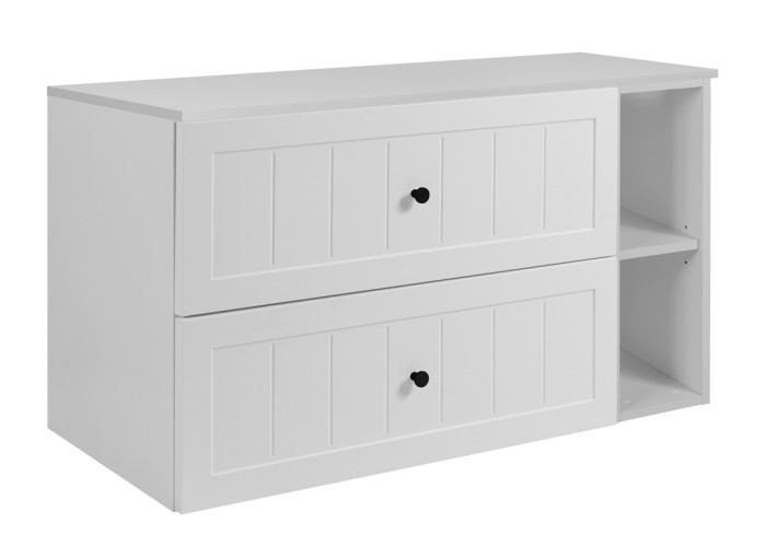 Zásuvky sú vybavené systémom tichého dovierania, ktorý zvyšuje celkový komfort pri každodennom používaní. Do zásuviek sa pohodlne zmestia kozmetické produkty alebo čistiace prípravky, uteráky a drobné príslušenstvo. Odporúčame zakúpiť plochý sifón, ktorý umožní naplno využiť hornú zásuvku.