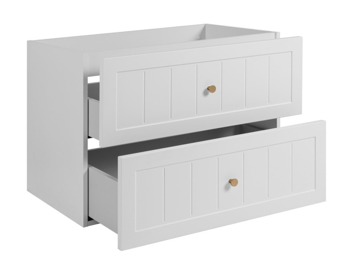 Skrinka pod umývadlo GUSTO biely W100DW je praktické riešenie pre stredne veľké kúpeľne. Ide o kúpeľňový nábytok navrhnutý v súlade s trendmi v provensálskom štýle. Skrinka pod umývadlo v šírke 100 cm sa skladá z troch častí: