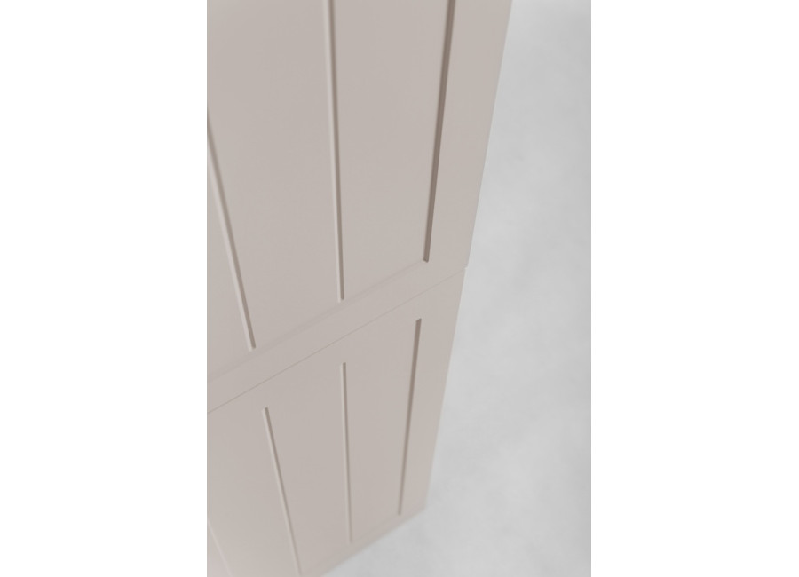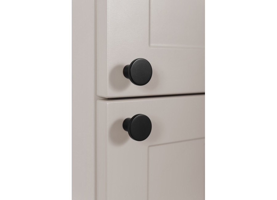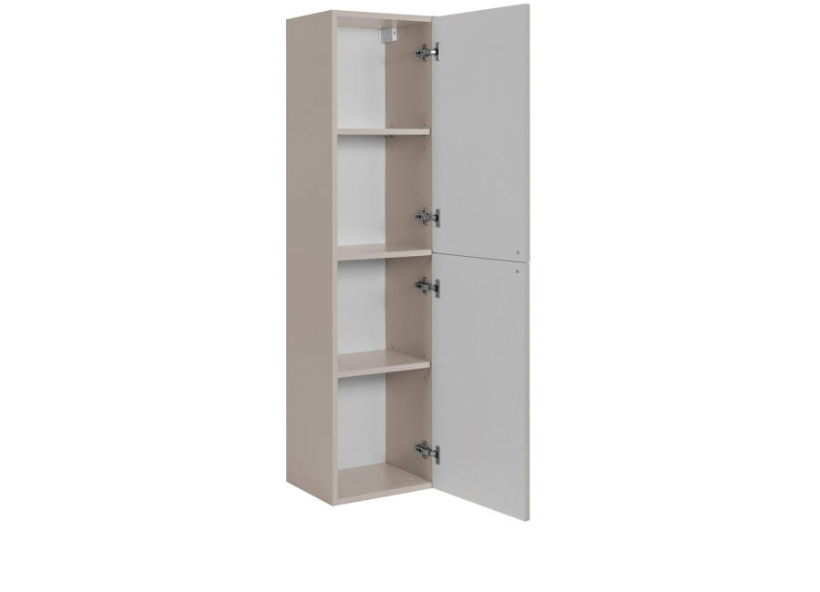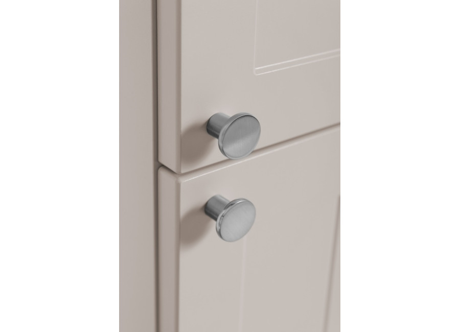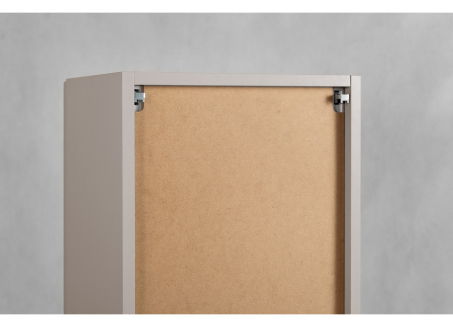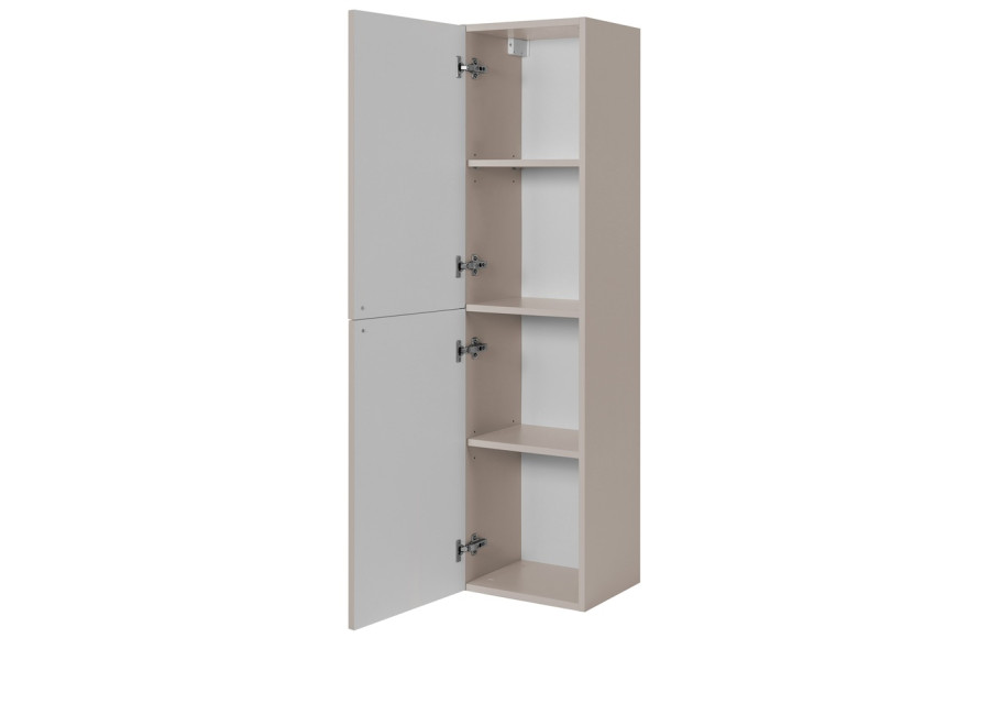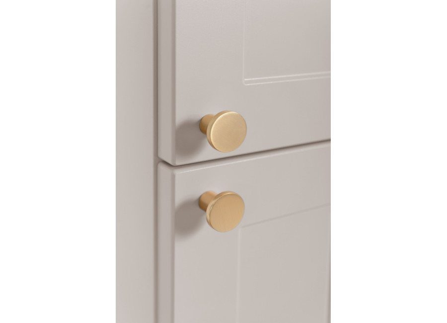 Úzka policová skrinka do kúpeľne GUSTO kašmír K35 je výborným príkladom toho, ako môže nábytok do kúpeľne pôsobiť elegantne. Jej dizajn definuje farebné prevedenie kašmír, ktoré v kombinácii s prednými plochami, ktoré sú zdobené jemným drážkovaním pripomína provensálsky štýl. Korpus je vyrobený z laminovanej drevotriesky s ABS hranami, dvierka sú z MDF materiálu. Veľkou výhodou sú tri farebné sady úchytiek v balení: čierna, zlatá a strieborná, vďaka čomu si finálny vzhľad prispôsobíte presne podľa batérií či iných kovových prvkov v miestnosti.