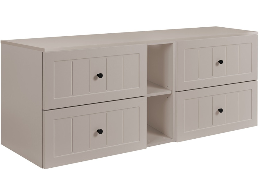 Skrinka pod umývadlo GUSTO kašmír K140DK je súčasťou modernej kolekcie kúpeľňového nábytku, navrhnutej s dôrazom na funkčnosť a provensálsky dizajn. Kúpeľňová skrinka má šírku 140 cm a skladá sa zo štyroch častí: