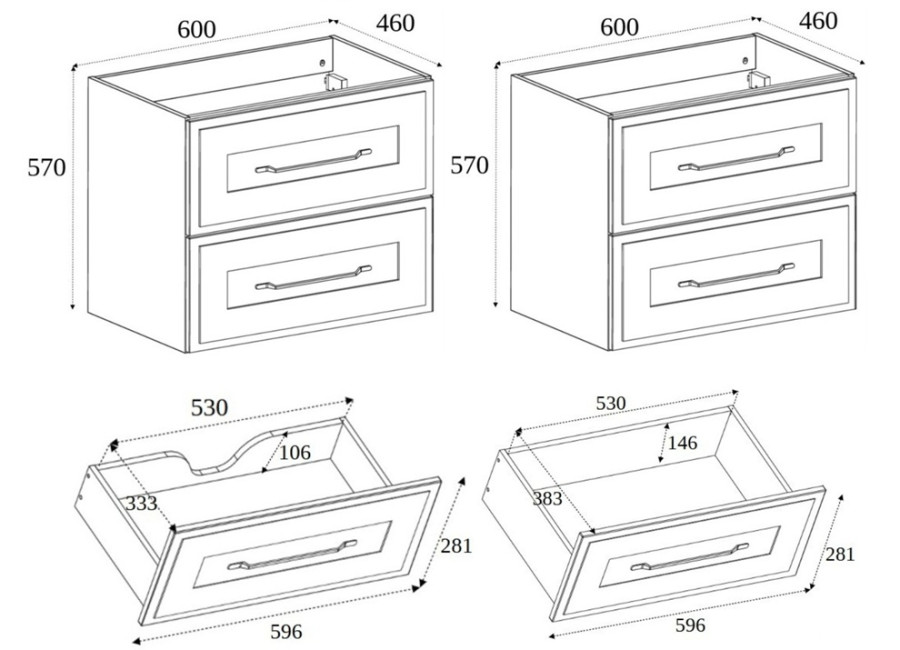 Skrinka pod umývadlo je navrhnutá ako závesná na stenu, čo šetrí miesto a uľahčuje čistenie podlahy. Zásuvky sú vybavené funkciou tichého dovierania. Ako súčasť balenia sú zahrnuté úchytky v zlatej farbe, ktoré podčiarkujú klasický dizajn skrinky. Odporúčame zakúpiť plochý sifón, ktorý umožní maximálne využitie hornej zásuvky. Skrinka do kúpeľne je odolná voči vlhkosti a poskytuje dostatok priestoru pre organizáciu vašej kúpeľňovej kozmetiky, čistiacich prostriedkov alebo iných denných nevyhnutností. Skvelé využitie nájdete pre ukladanie fénov, žehličiek na vlasy či uterákov, čím zabezpečíte poriadok a prehľad vo vašej kúpeľni.