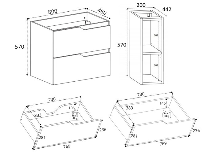 - skrinka je vyrobená z laminovanej drevotriesky a MDF materiálu odolného voči vlhkosti,