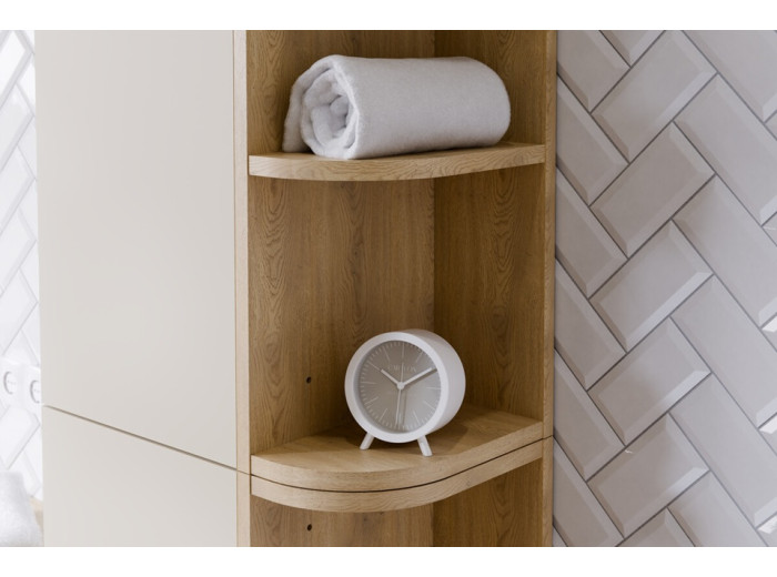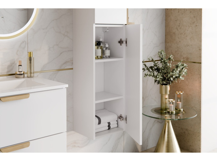 Hladké rovné dvierka v prevedení biela matná poskytujú skrinke minimalistický dizajn. Bezúchytkové otváranie s technológiou Push to Open pridáva modernejší vzhľad. Tiché dovieranie dvierok zabezpečuje komfortné používanie. Umožňuje uloženie rôznych kúpeľňových potrieb, od kozmetiky po čistiace prostriedky a prispieva tak k udržaniu poriadku.