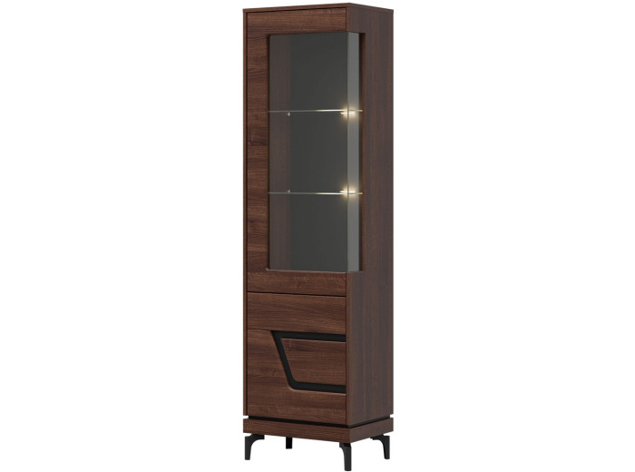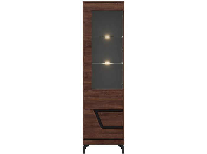 Vitrína VERO VR04 je úzkym a praktickým riešením, vhodným najmä do menších priestorov alebo ako súčasť väčšej zostavy v rámci obývacej steny. Ide o vitrínu v šírke 54,5 cm. Má dvoje dvierka, z toho vrchné sú presklené.