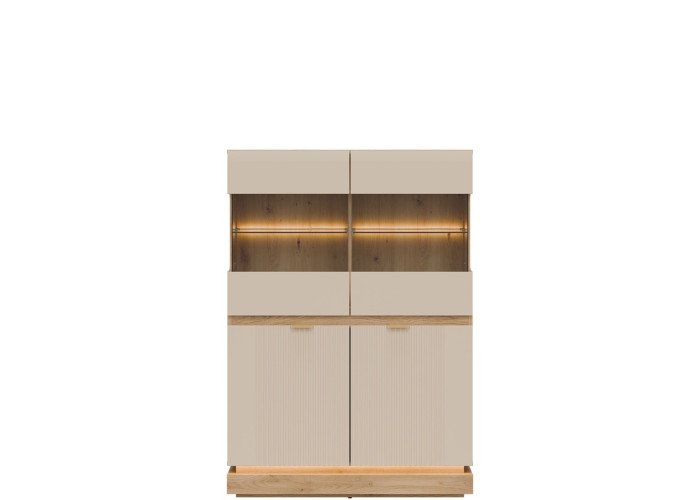 - predné plochy z MDF materiálu vo farbe kašmír, zdobené jemným zvislým drážkovaním,