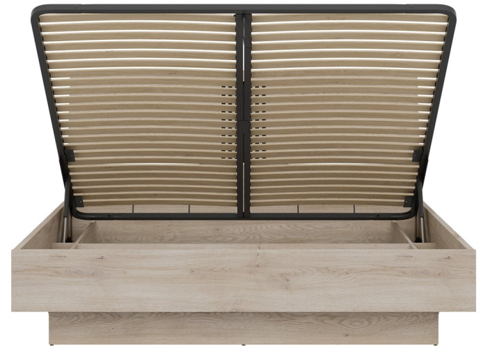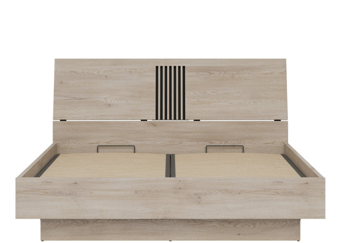 Konštrukcia je vyrobená zo 16 mm laminovanej drevotriesky, doplnenej o ABS hrany. Súčasťou postele je praktický výklopný rošt v pevnom ráme, zabezpečujúci optimálnu oporu aj dostatočné odvetrávanie matraca. Matrac nie je súčasťou balenia, čo vám dáva možnosť vybrať si presne taký typ a tvrdosť, aké vám najviac vyhovujú. Veľkou výhodou je priestranný úložný priestor ukrytý pod ložnou plochou, ku ktorému sa jednoducho dostanete pomocou výklopného mechanizmu.