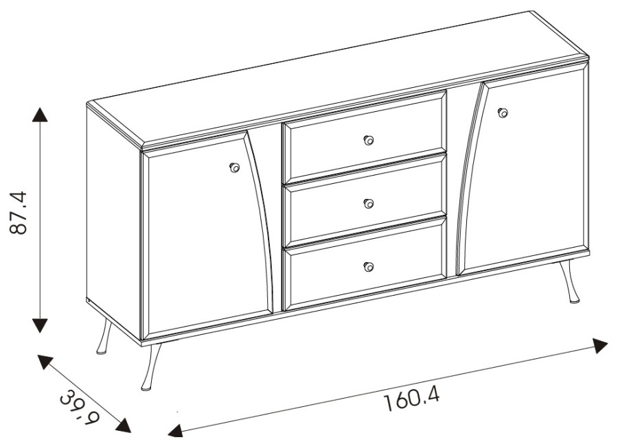 - komoda v šírke 160,4 cm,