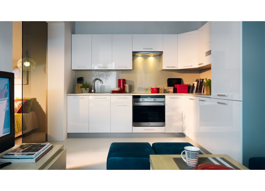Moderný dizajn kuchyne, MDF dvierka vo vysokom bielom lesku (alebo biele matné), široký výber skriniek, to všetko Vám ponúka kuchyňa TOP LINE. Vhodná je do menších aj väčších kuchynských priestorov, v ponuke nájdete aj skrinky na vstavané spotrebiče.