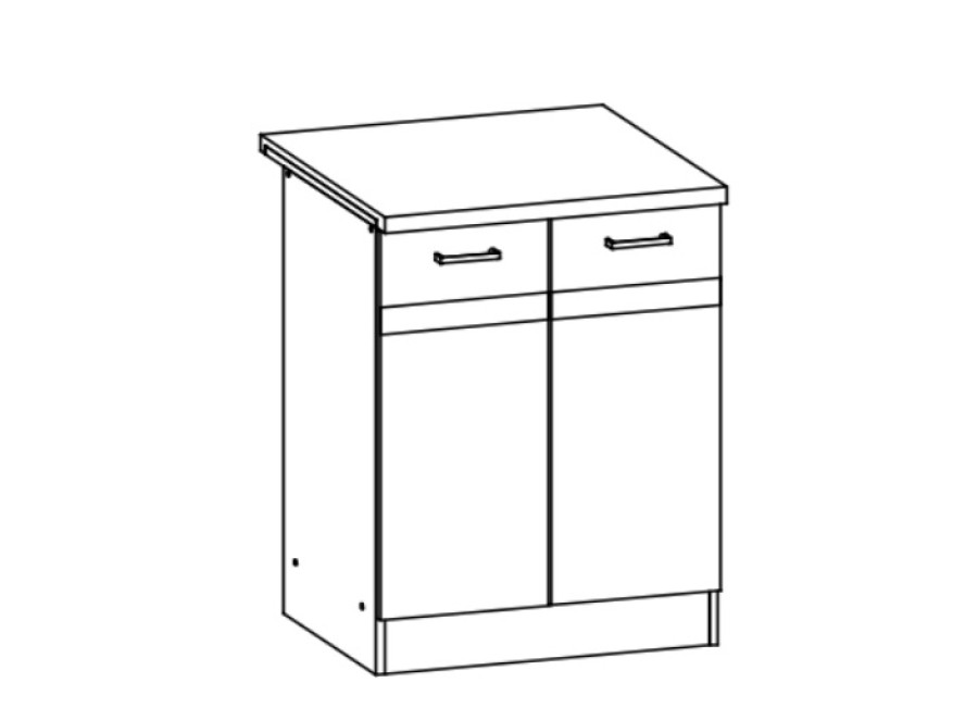 Dolná skrinka má už v cene aj pracovnú dosku z klasickej drevotriesky s ABS hranou. Skrinku nie je možné objednať bez pracovnej dosky. V prípade záujmu o pracovnú dosku na mieru a vcelku, je ju potrebné objednať samostatne z našej ponuky kuchýň.
