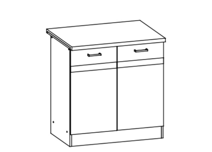 Dolná skrinka má už v cene aj pracovnú dosku z klasickej drevotriesky s ABS hranou. Skrinku nie je možné objednať bez pracovnej dosky. V prípade záujmu o pracovnú dosku na mieru a vcelku, je ju potrebné objednať samostatne z našej ponuky kuchýň.