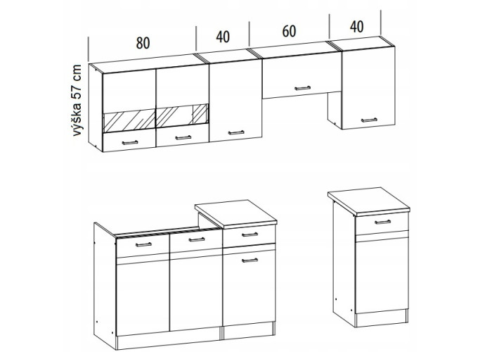 | Výška horných skriniek | 57 cm |