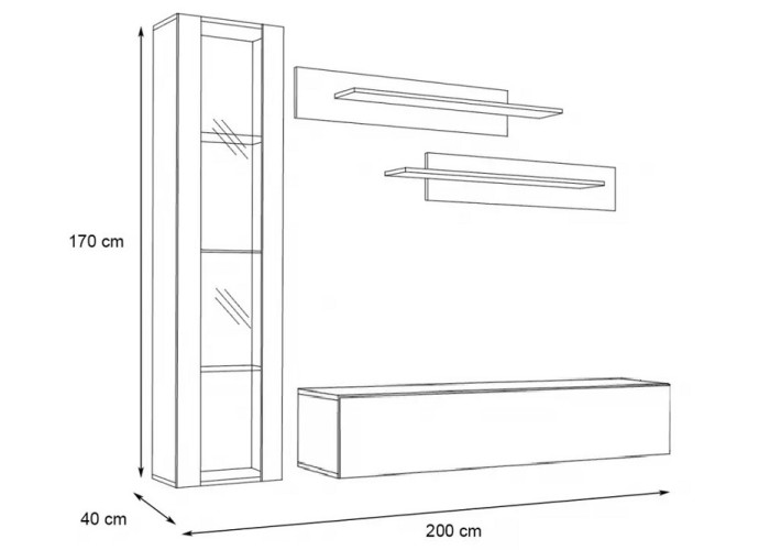 | Šírka | 200 cm (bez medzery medzi skrinkami) |
