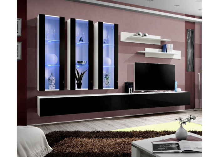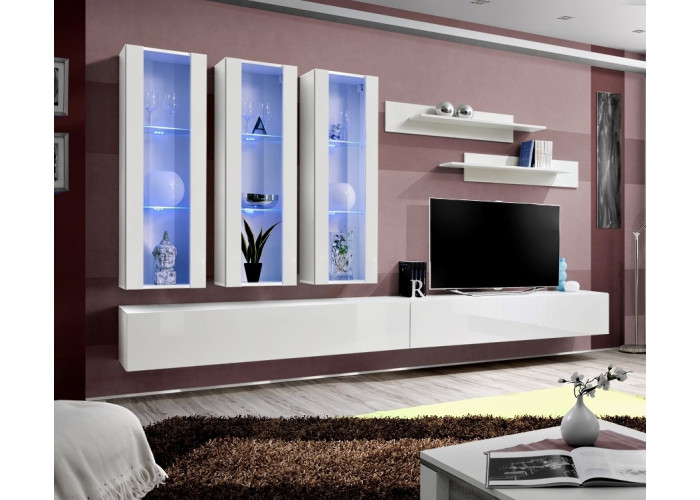 Obývacia stena FLY H2 sa skladá z troch častí: z vitríny s LED podsvietením, TV stolíka a 2 ks závesn&y..