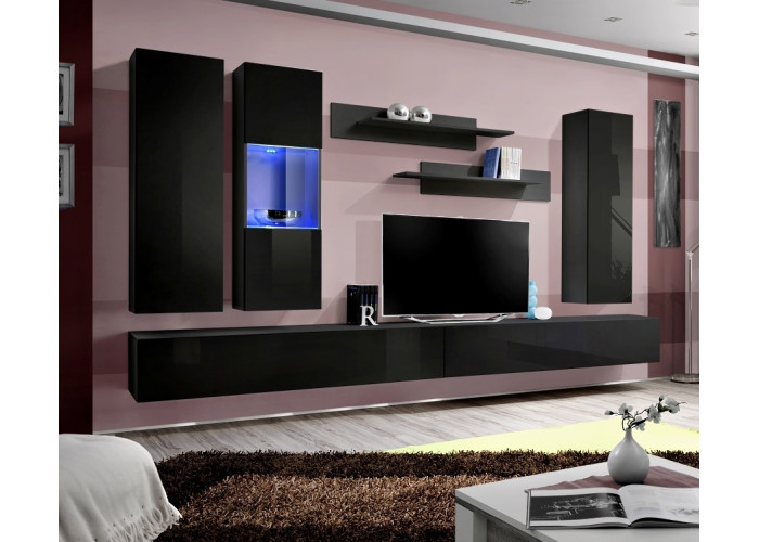 Obývacia stena FLY E5 sa skladá z niekoľkých častí: zo závesných skriniek a vitrín, 2 ks TV stolíkov a 2 ks závesných poličiek. Vhodná je najmä do moderne zariadených priestorov. Dvierka z vysokého lesku sa otvárajú pomocou bezúchytového systému PUSH-CLICK, kedy stačí jemne zatlačiť na dvierka, pre otvorenie a opätovné zatvorenie. Všetky skrinky je potrebné zavesiť na stenu, čo oceníte najmä pri upratovaní.