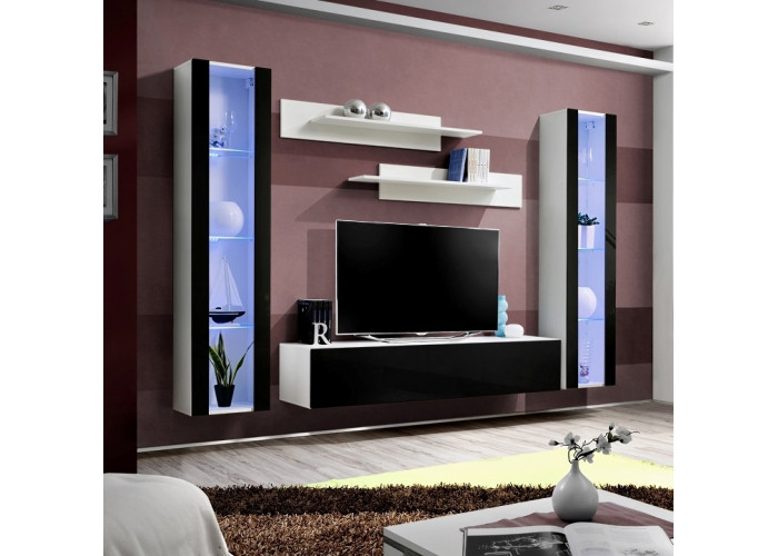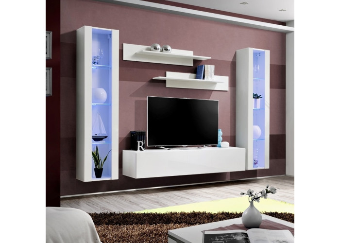 Obývacia stena FLY A2 sa skladá z niekoľkých častí, z 2 ks vysokých vitrín, 1 ks TV stolíka a 2 ks závesných poličiek. Vhodná je najmä do moderne zariadených priestorov. Dvierka z vysokého lesku sa otvárajú pomocou bezúchytového systému PUSH-CLICK, kedy stačí jemne zatlačiť na dvierka, pre otvorenie a opätovné zatvorenie. Všetky skrinky je potrebné zavesiť na stenu, čo oceníte najmä pri upratovaní.