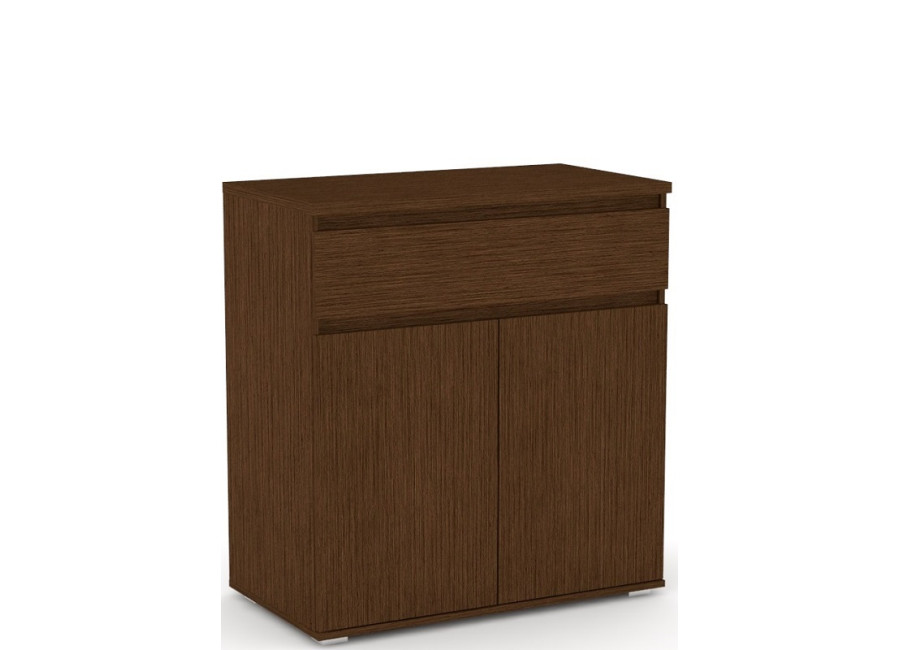 Praktická komoda so zásuvkou a dvierkami. Šikovná komoda je vyrobená z kvalitnej laminovanej drevotrieskovej dosky hrúbky 16 mm. Vrchná doska je hrúbky 25 mm, čo dodáva komode elegantný design. Hrany komody sú z odolného ABS materiálu hrúbky 2 mm, 1 mm a 0,5 mm. Vyberte si z množstva farebných prevedení.