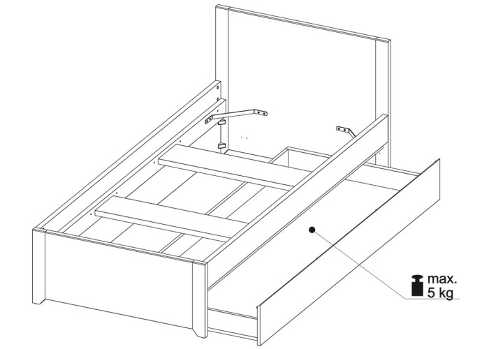 Súčasťou postele je aj úložný priestor, vo farbe zásuvky pod posteľ.