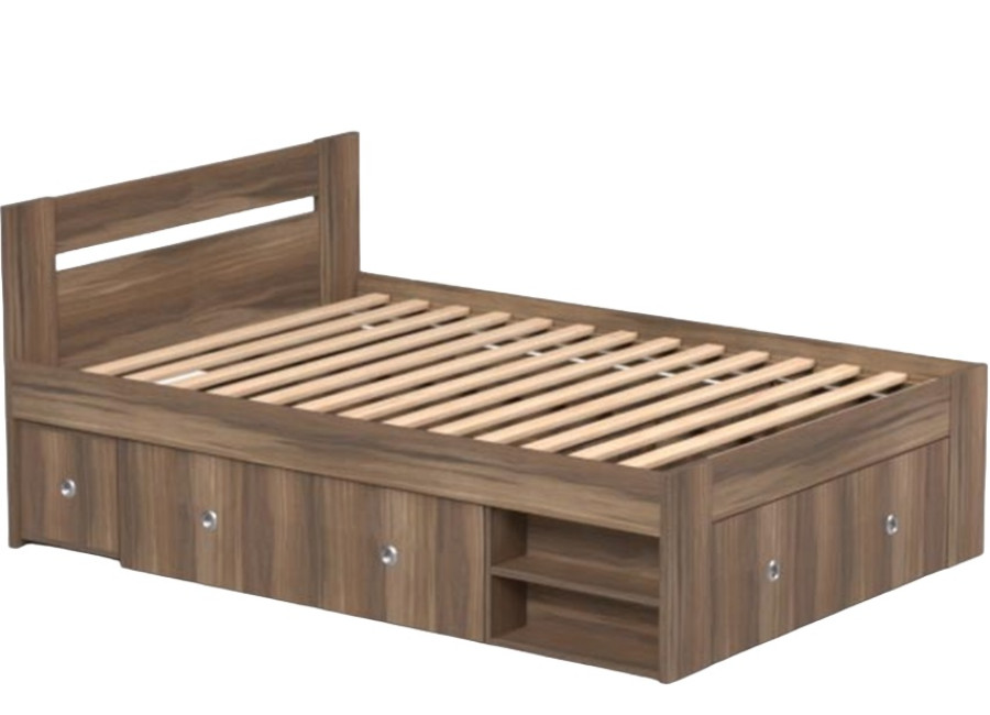 Manželská posteľ zahŕňa: korpus postele + 2ks výsuvných nočných stolíkov + 3 ks výsuvných úložných priestorov + 2 ks odklacích políc.